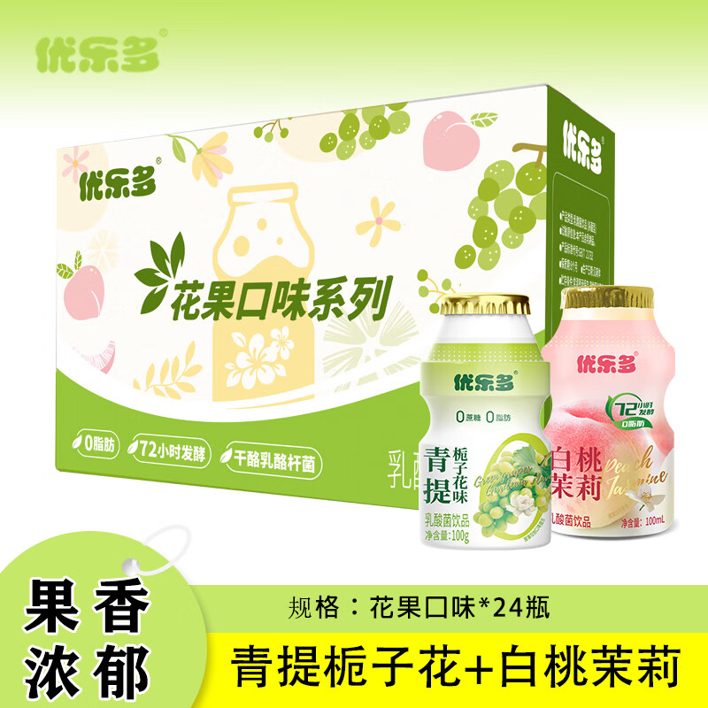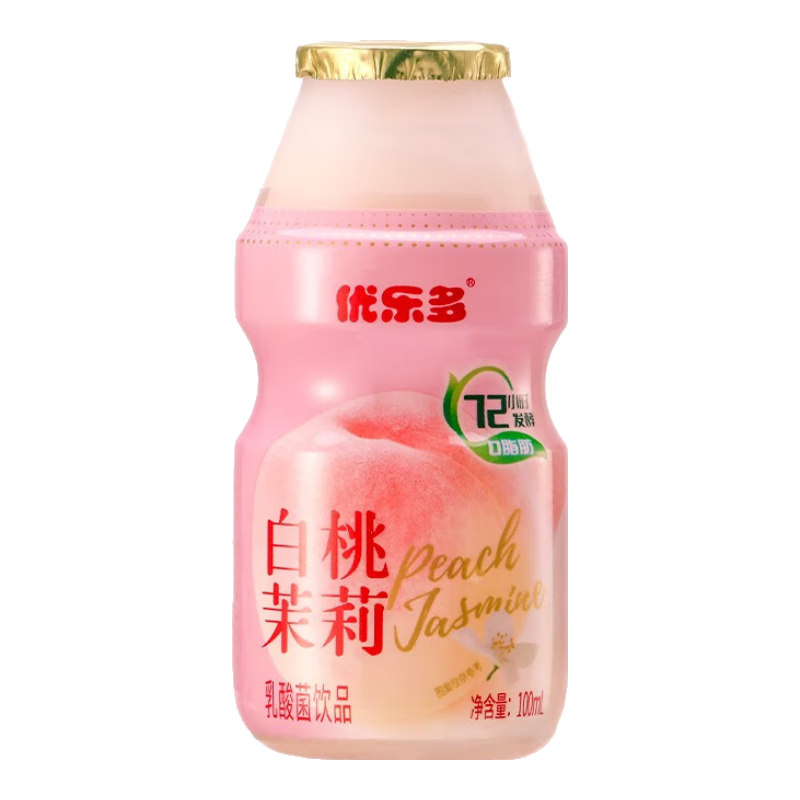 優(yōu)樂(lè)多乳酸菌飲品飲料白桃茉莉 青提梔子花味100ml4瓶2排