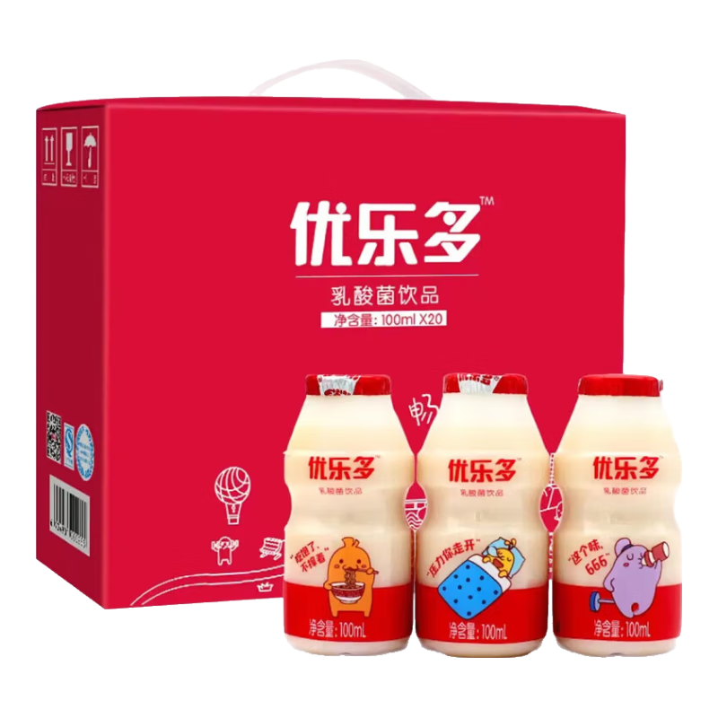 優(yōu)樂(lè)多乳酸菌飲品飲料青提梔子100ml*20瓶2箱裝益生菌酸奶整箱