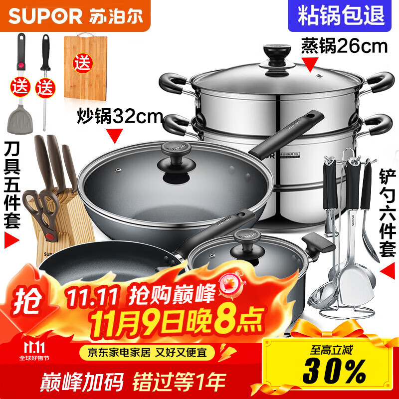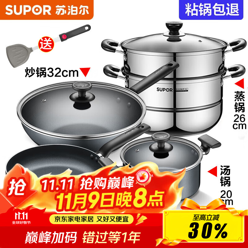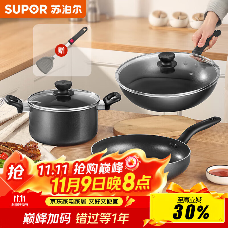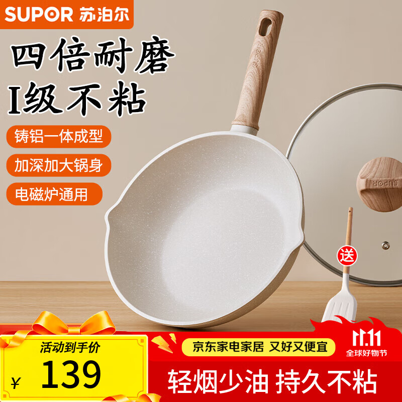 蘇泊爾(SUPOR)不粘鍋炒鍋輕量火紅點(diǎn)不粘煎炒鍋平底炒菜鍋具電磁爐明火通用