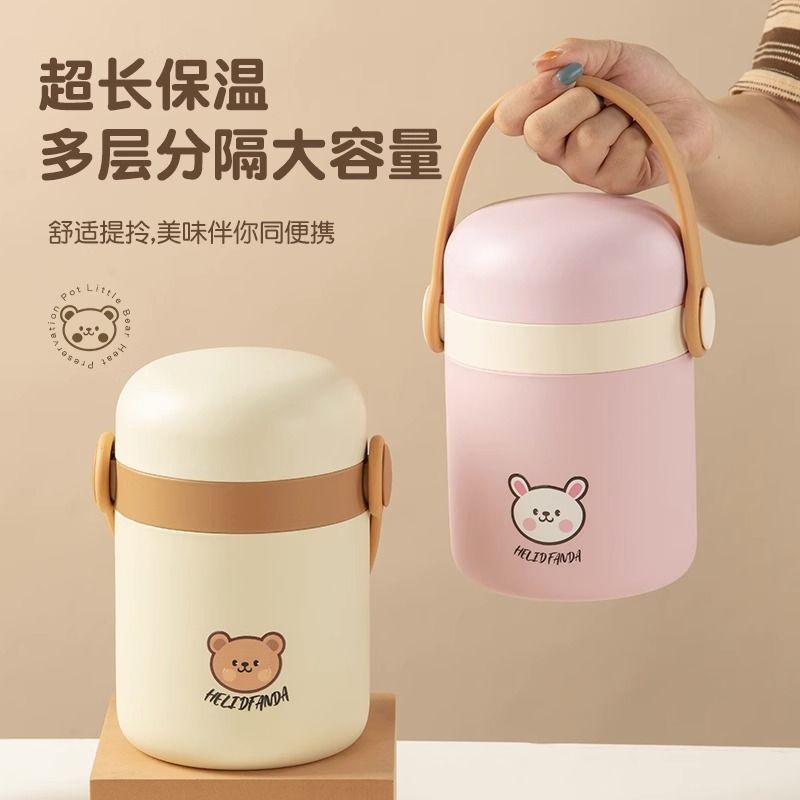 雙層保溫飯盒不銹鋼超長(zhǎng)保溫帶飯桶便攜上班族女學(xué)生高顏值湯壺碗