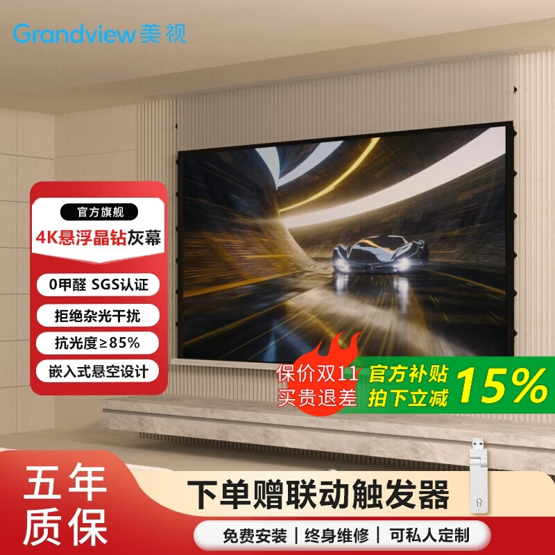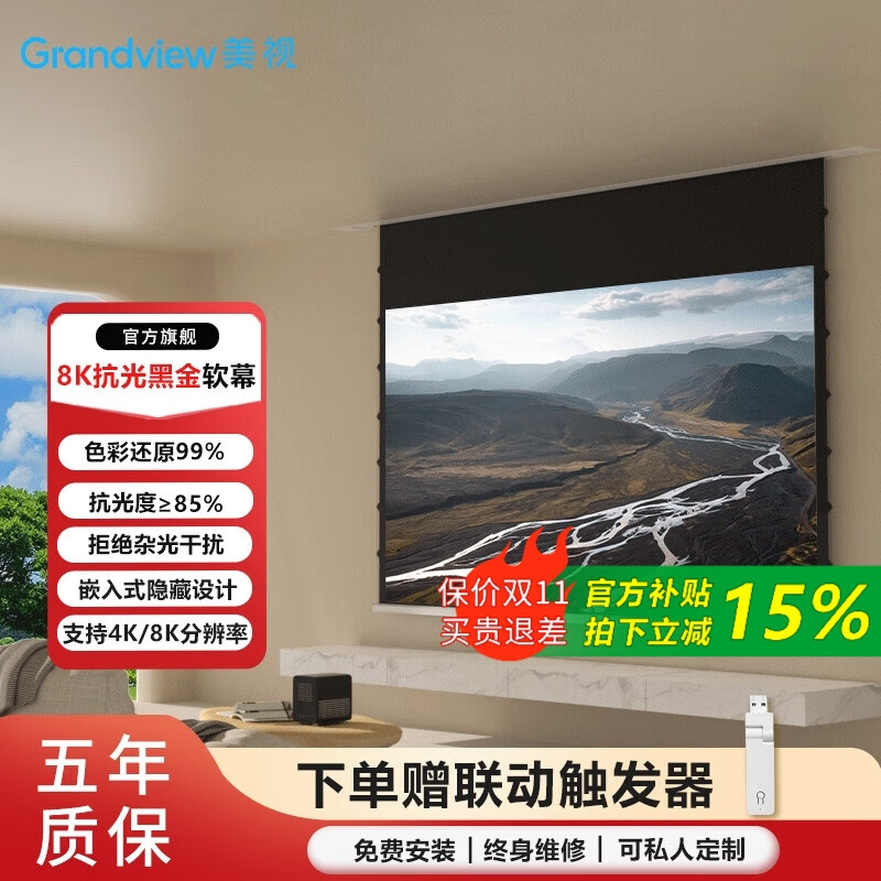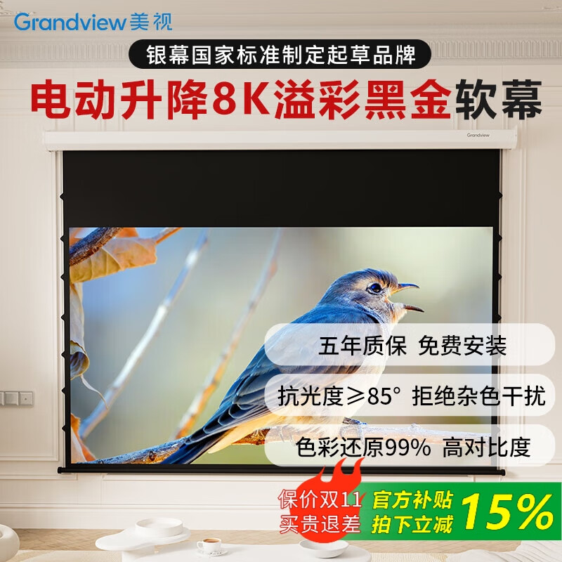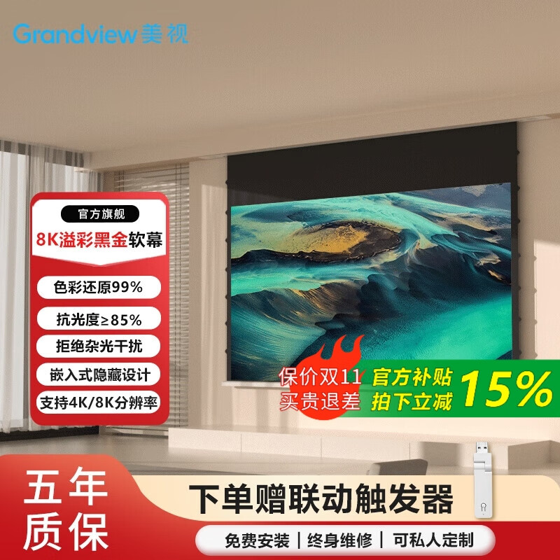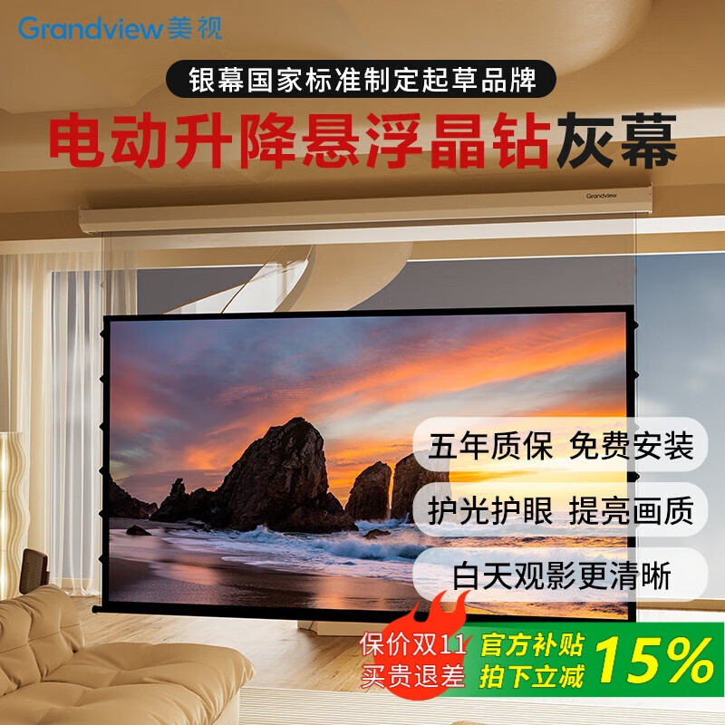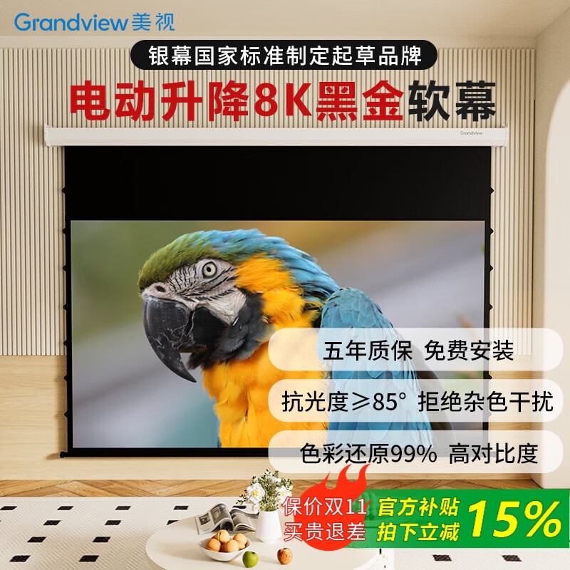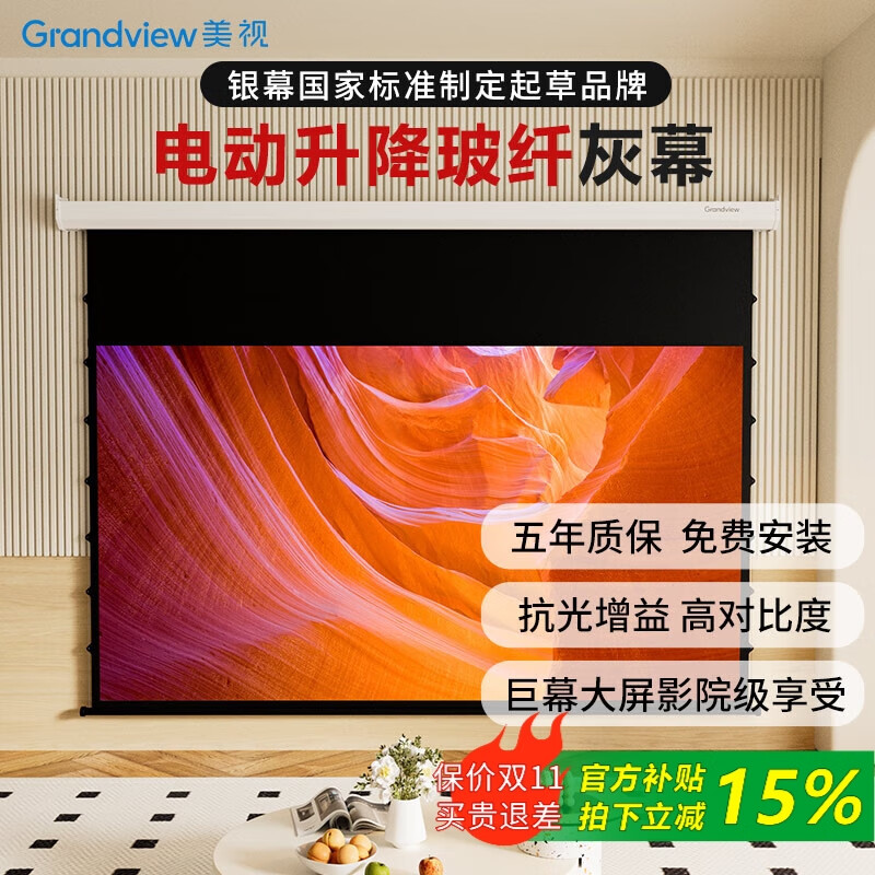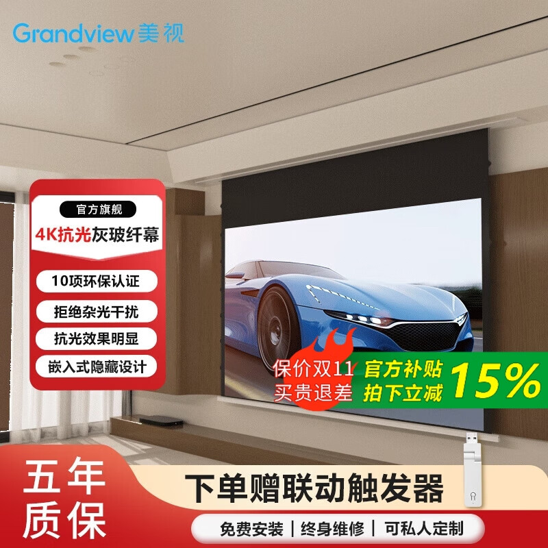 1699元鯨米(JINGMI)投影幕布電動遙控自動升降高清4K家用投影配件玻纖光子幕布客廳臥室壁掛吊頂隱藏投影儀屏幕 【4K抗光灰玻纖D6-黑邊款丨抗環(huán)境光丨高對比度】 133英寸16:9(包安裝)京東 2k