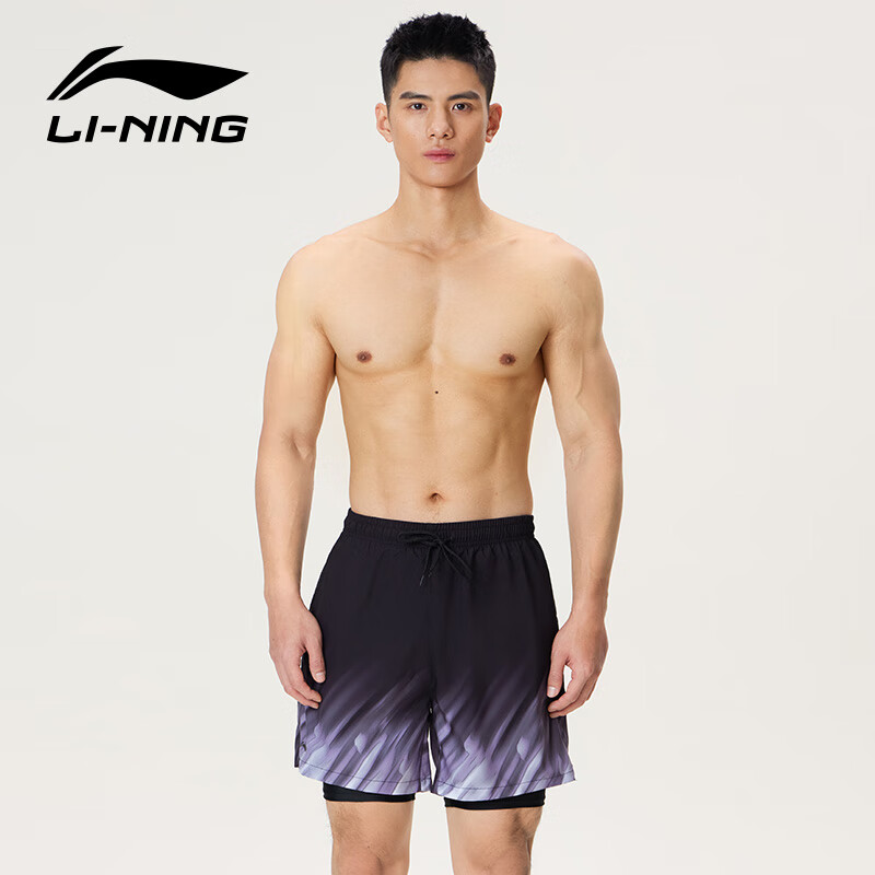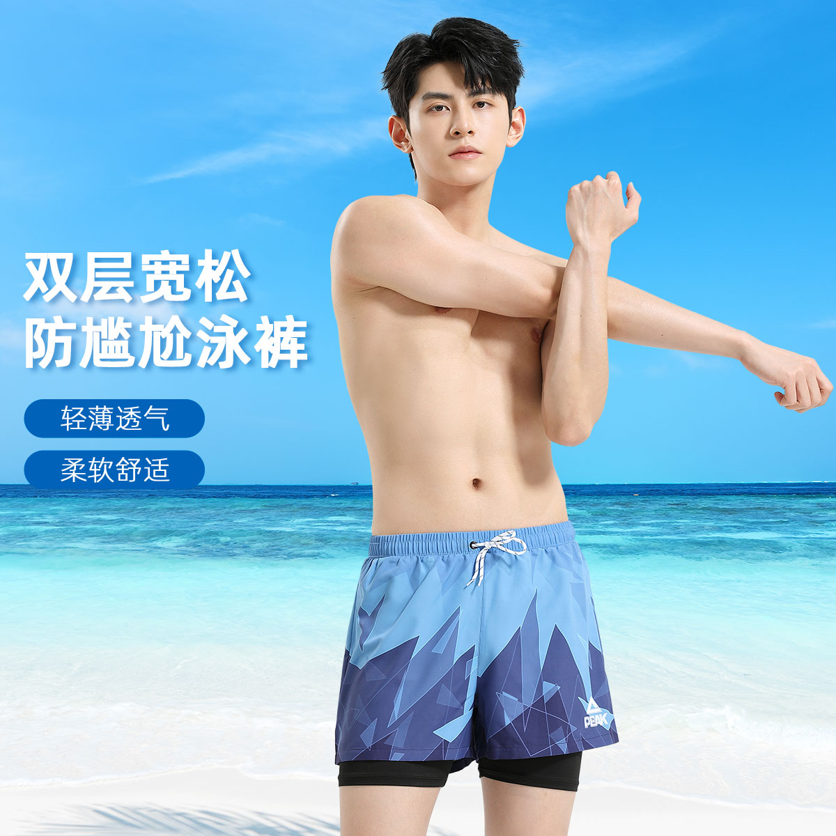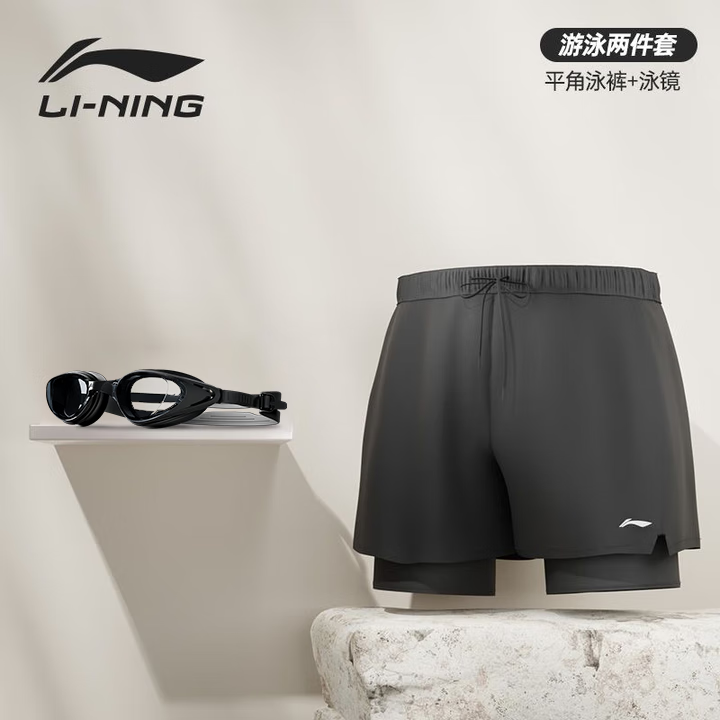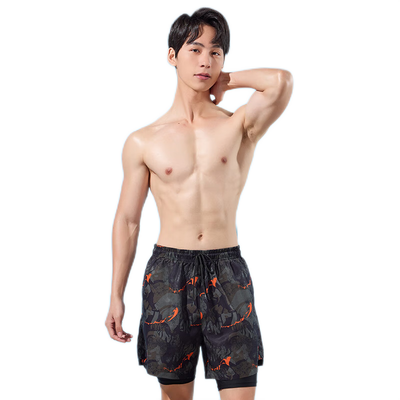 鴻星爾克泳褲男士雙層防尷尬平角寬松速干 度假沙灘褲泡溫泉