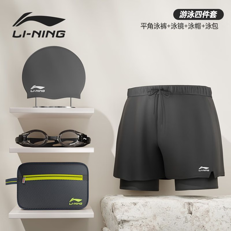匹克游泳褲男士泳褲泳帽泳鏡三件套溫泉防尷尬沙灘褲男款游泳裝備