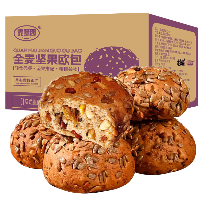 麥酥園 全麥面包堅(jiān)果粗雜糧面包早餐歐包代餐飽腹無糖精零食品2斤