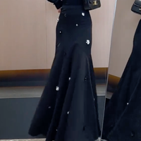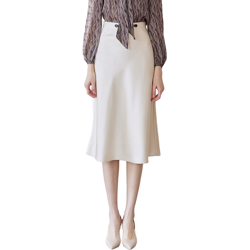 三彩2025春季新款緞面魚尾裙高腰半身裙優(yōu)雅A字長裙浪漫M 灰紫色 M 160/68A