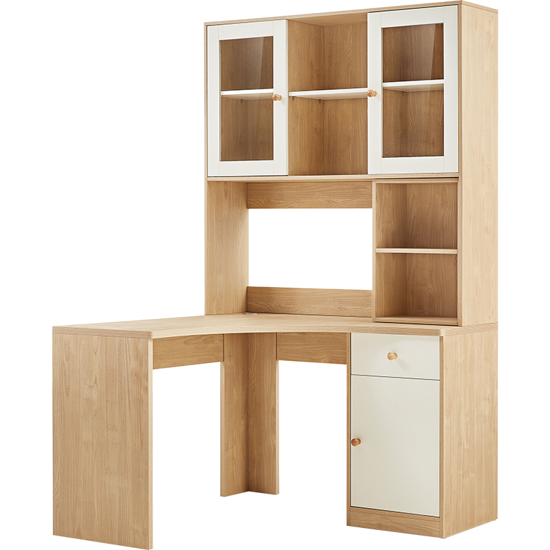 實(shí)木轉(zhuǎn)角書桌書架一體桌:家居實(shí)用好物,滿足多元需求
