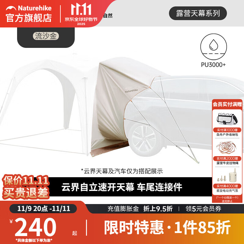 自駕游車尾延伸帳篷車邊帳篷 帶網(wǎng)紗延伸天幕前廳SUV帳篷車尾帳篷