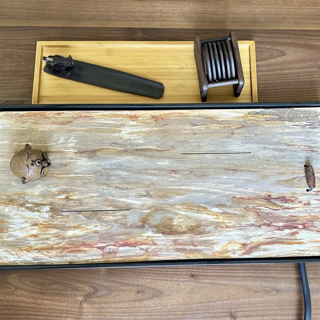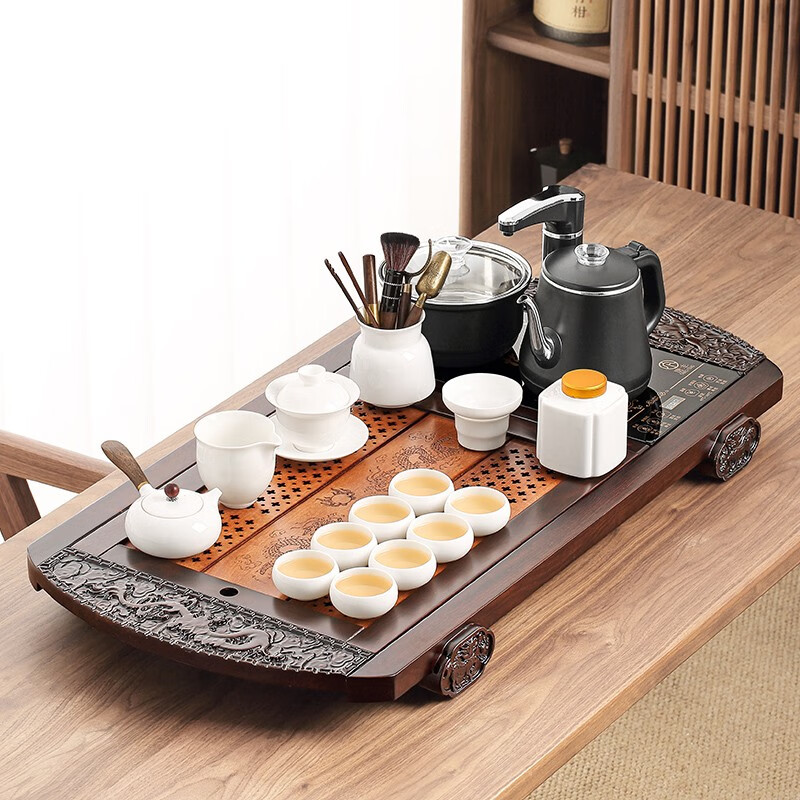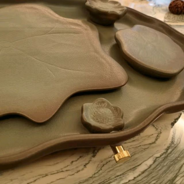 茶盤(pán)是用來(lái)置茶杯的,材質(zhì)廣泛,款式多樣,圓月形、棋盤(pán)形……等等。但不管什么材質(zhì)和式樣,寬、平、淺、白這四個(gè)特點(diǎn)是最重要的。就是盤(pán)面要寬,以便就客人人數(shù)多寡,可以放多幾個(gè)杯。盤(pán)底要平,才不會(huì)使茶杯不穩(wěn),易于搖晃;邊要淺,色要白,這都是為了烘托茶杯、茶壺,使之雅觀。-參考來(lái)源百度百科