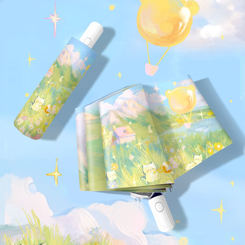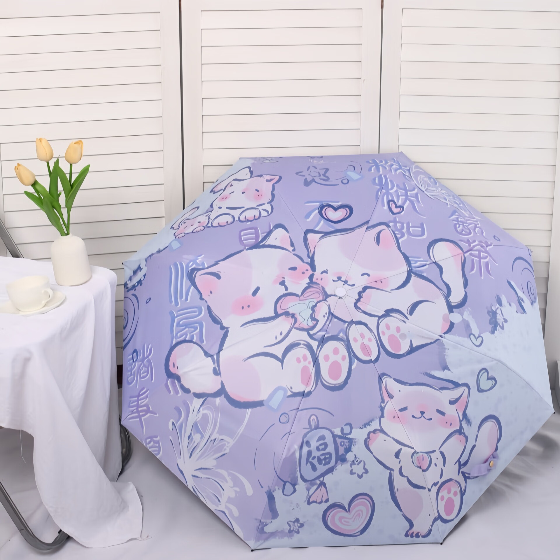 可愛貓晴雨兩用防曬紫外線遮陽黑膠太陽自動雨傘折疊女