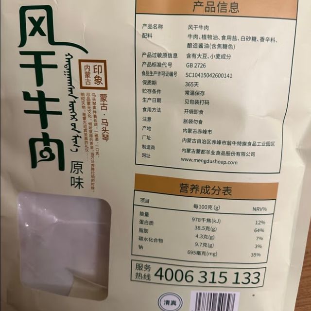 蒙都原味風干牛肉干(488g)測評:七成風干的清真品質(zhì)之選