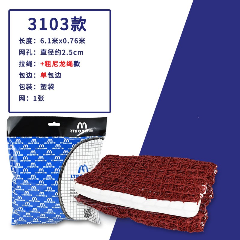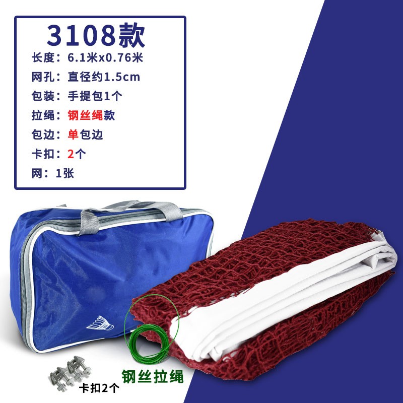 32元mysports羽毛球網(wǎng)標(biāo)準(zhǔn)網(wǎng)室外戶外家用簡易折疊羽毛球網(wǎng)架便攜式比賽網(wǎng)子 6.1m 3108球網(wǎng)單包邊 包 鋼絲繩京東 5k
