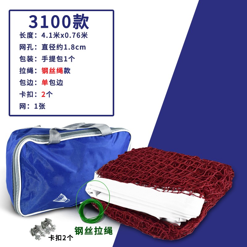 24.5元mysports羽毛球網(wǎng)標(biāo)準(zhǔn)網(wǎng)室外戶外家用簡易折疊羽毛球網(wǎng)架便攜式比賽網(wǎng)子 4.1m 3100球網(wǎng)單包邊 包 鋼絲繩京東 5k