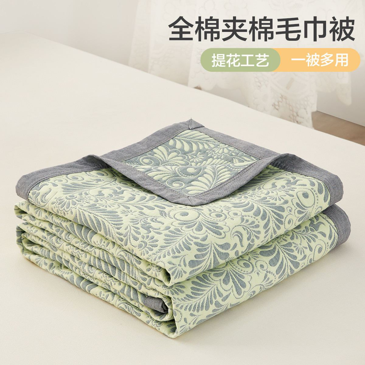 A類母嬰級全棉色織雙層紗多功能蓋毯空調(diào)薄被子純棉紗水洗床單蓋