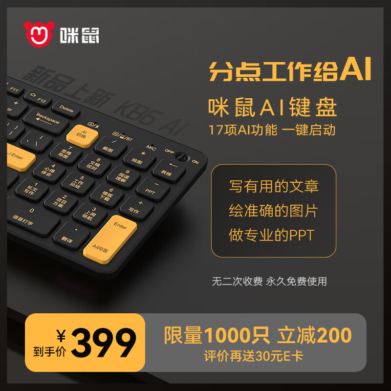 咪鼠KB6 AI鍵盤,可以用指尖迸發(fā)靈感,也能用語音引領(lǐng)智能化創(chuàng)作