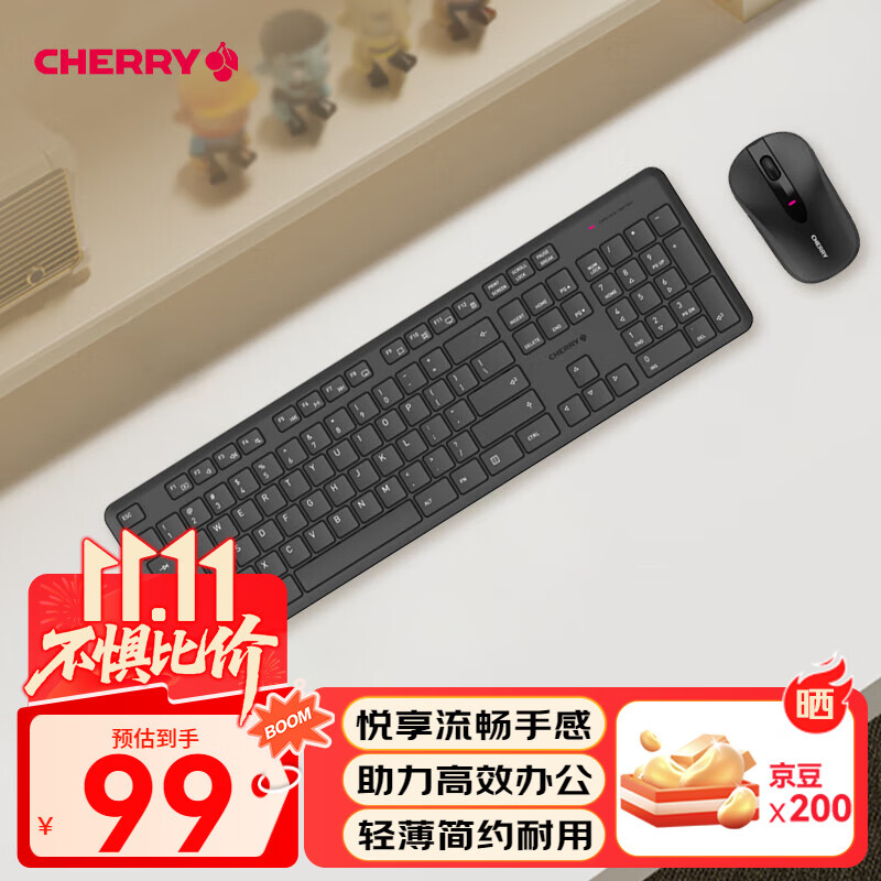 百元出頭買一線大廠Cherry無線鍵盤,靜音鼠標?安靜優(yōu)雅,新一代辦公神器,櫻桃DW2300復古白套裝