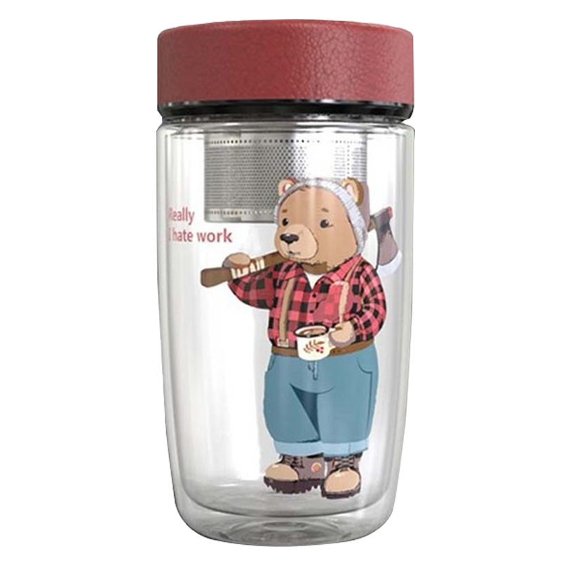 天喜玻璃杯雙層加厚水杯男女帶茶隔泡茶杯大容量家居館350ml