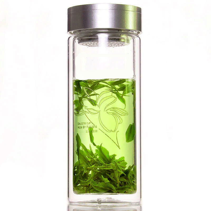 富光 男女士雙層玻璃杯 水杯 支持團(tuán)購定制 304杯子泡茶杯400ML黑