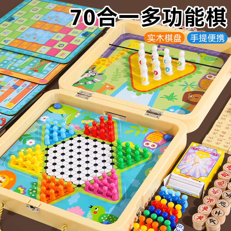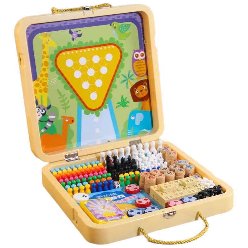 跳棋飛行棋五子棋斗獸棋類兒童學(xué)生幼兒園木制益智玩具多功能棋盤