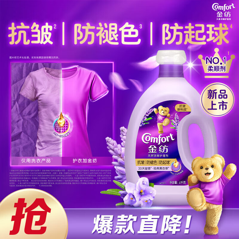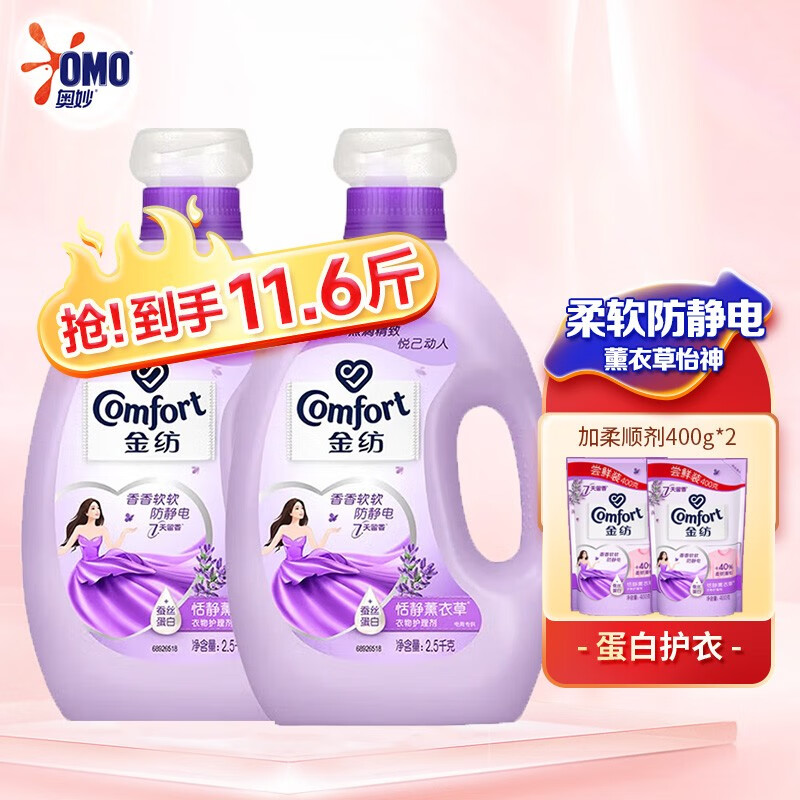 ?藍(lán)月亮柔順劑衣物護(hù)理劑 溫和親膚防靜電 持久留香 植物健康配方 3kg/瓶x2(薰衣草香) 嬰兒衣物可用沖