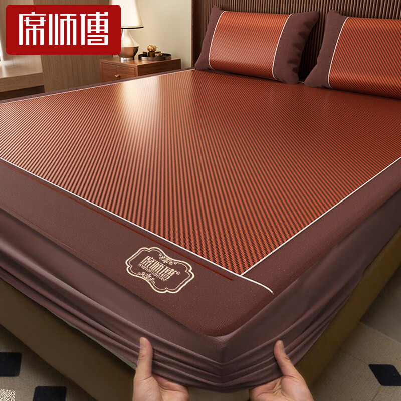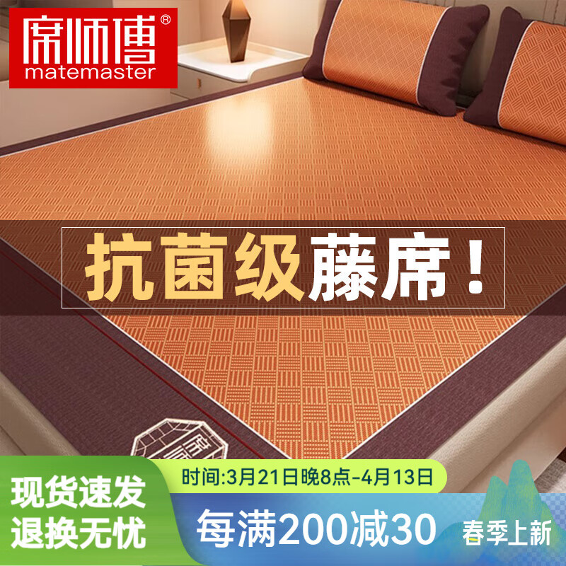 夏天印尼藤席三件套天然艾草抗菌涼席雙面冰絲席可折疊宿舍空調(diào)席