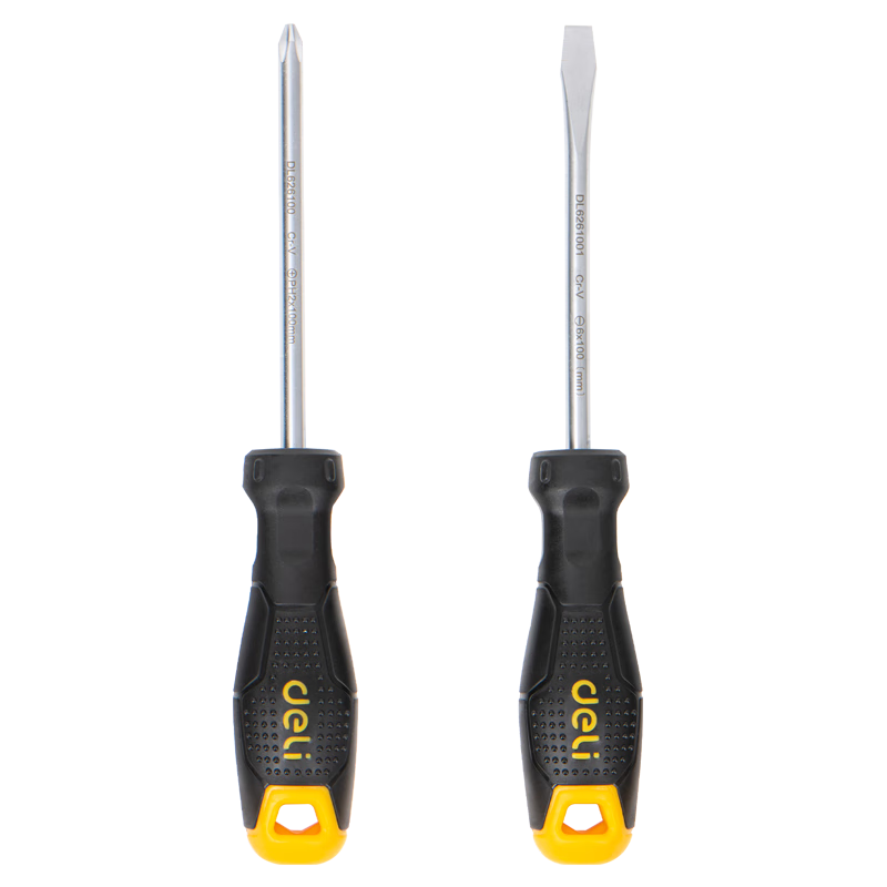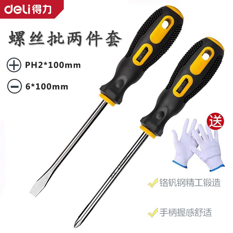 得力(deli)磁性螺絲刀套裝一字十字螺絲刀帶磁家用多功能梅花螺絲刀平口改錐 磁性螺絲刀2件套 DL620102