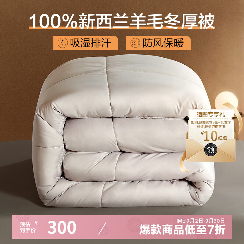 AUSGOLDENMIX澳洲進(jìn)口100%純羊毛被子A類,享受加厚防螨抗菌雙人冬被的溫暖呵護(hù)