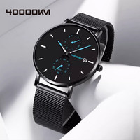 四萬公里男士手表時尚潮流雙日歷石英表初中高中學生青少年手表男
