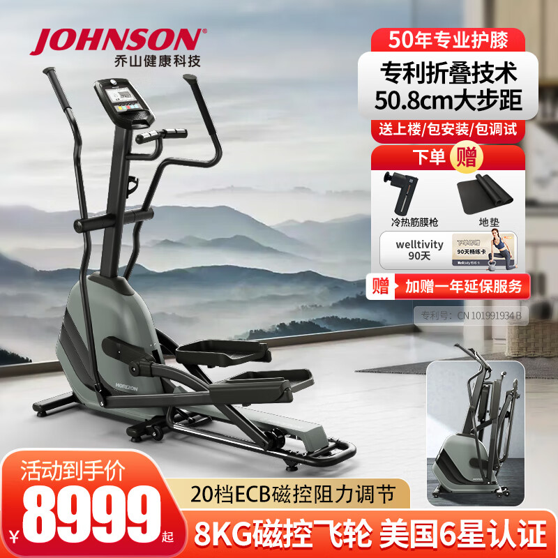 喬山(JOHNSON)橢圓機(jī) 家用健身器材電磁控可折疊前置飛輪橢圓儀 ANDES