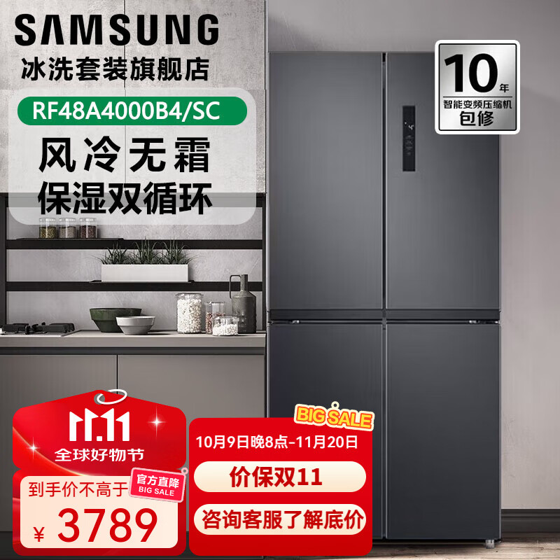 3298元三星(SAMSUNG)488升大容量十字對多門電冰箱RF48A4000 風(fēng)冷無霜 智能變頻冰箱 保濕雙循環(huán) 無霜冰箱 多開門冰箱 十字對開RF48A4000M9/SC【月光銀】京東 100