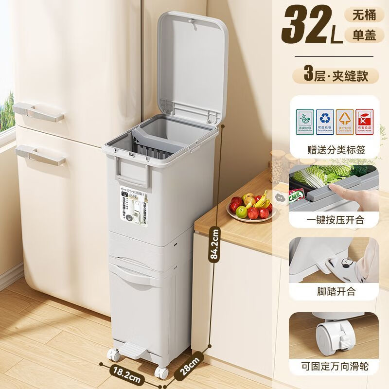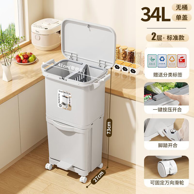 北杉(BEiSHAN)廚房高垃圾桶大容量帶蓋雙層干濕分離日式廚余餐廚垃圾桶家用室內垃圾分類垃圾桶大號 【3