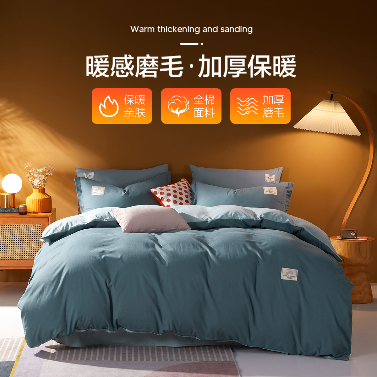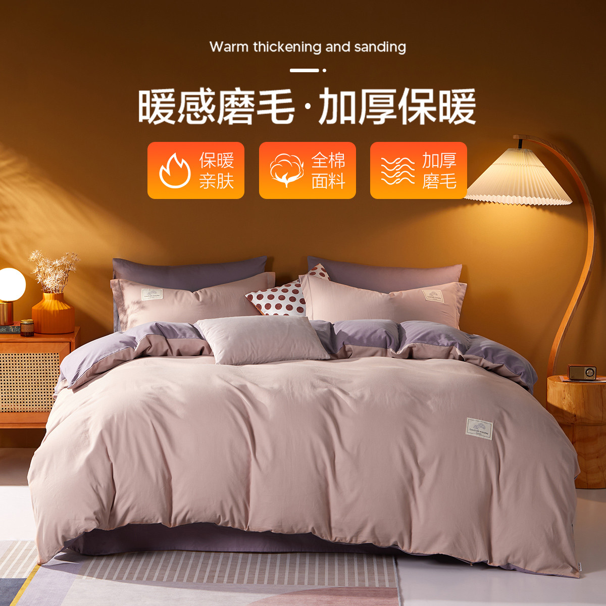 多喜愛純棉雙面磨毛四件套三件套加厚全棉秋冬被套床單套件梵卡