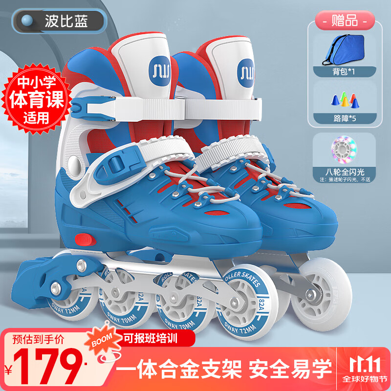 斯威(SWAY)輪滑鞋兒童專業(yè)溜冰鞋男女童初學(xué)者可調(diào)節(jié)直排輪成人滑冰旱冰鞋 藍(lán)粉【全包硬殼+雙重芭扣