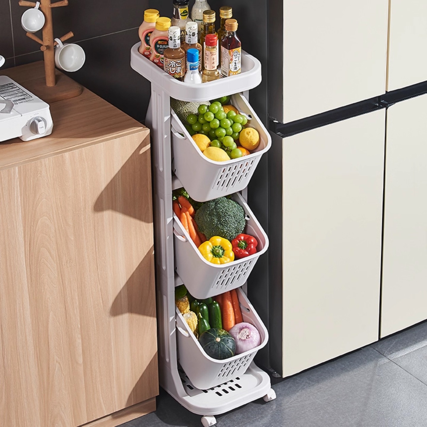 多層落地儲(chǔ)物架,釋放廚房的空間