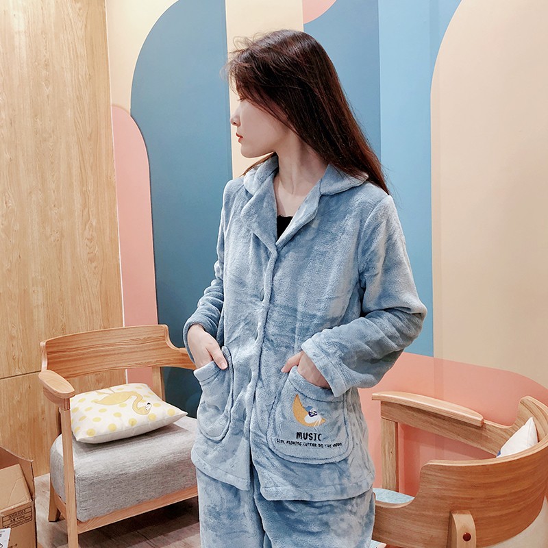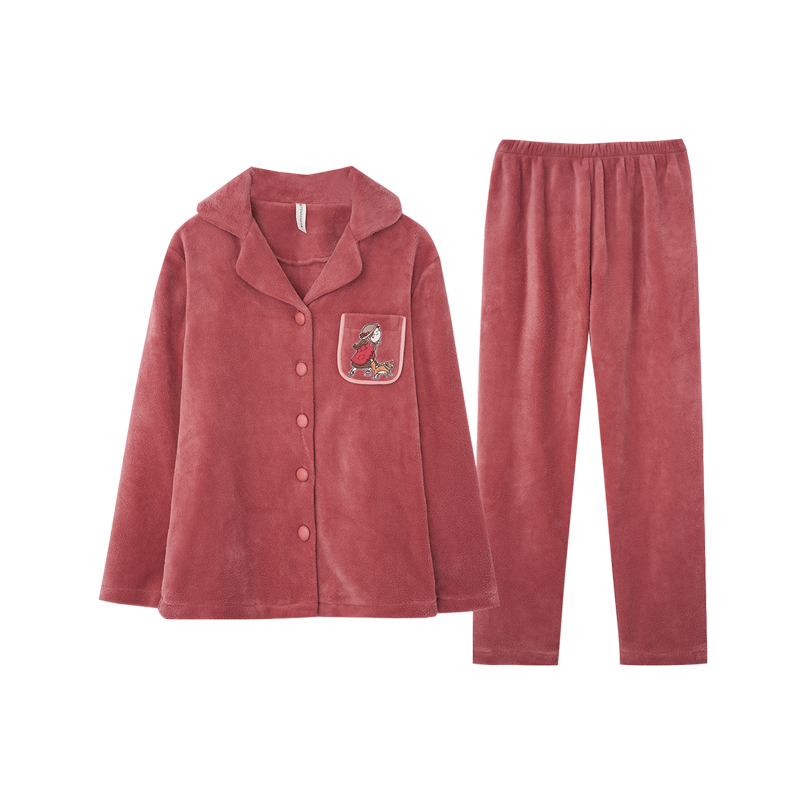 珊瑚絨睡衣女春秋冬季加厚加絨甜美可愛(ài)法蘭絨家居服公主風(fēng)套裝