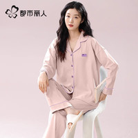 ?芬騰 睡衣女純棉學(xué)生22年春秋新款簡約純色翻領(lǐng)長袖長褲青年開衫口袋休閑全棉家居服套裝 桔色 L沖沖沖沖?