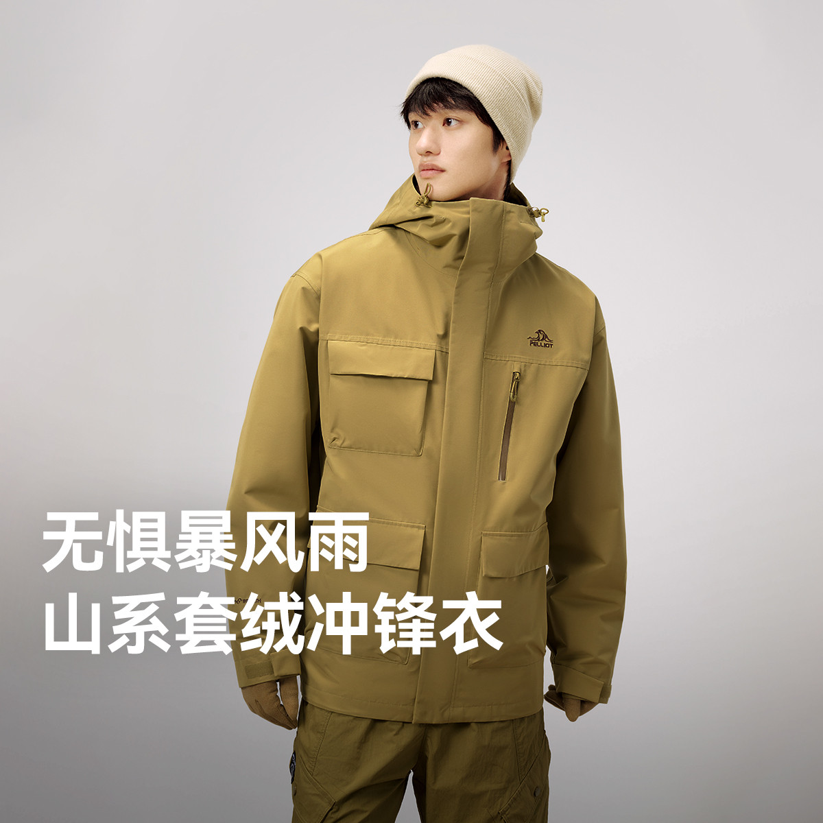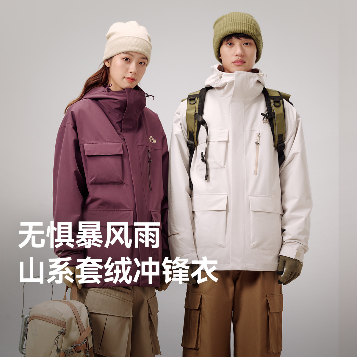 伯希和山系露營羽絨沖鋒衣男女三合一春秋外套鵝絨內(nèi)膽防水夾克登山服 米白色【男女同款】/鵝絨兩件套 M