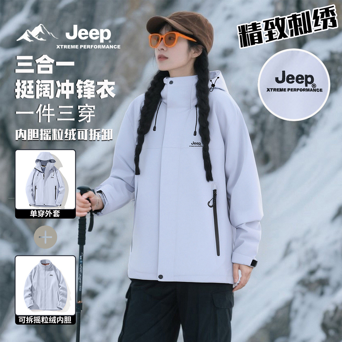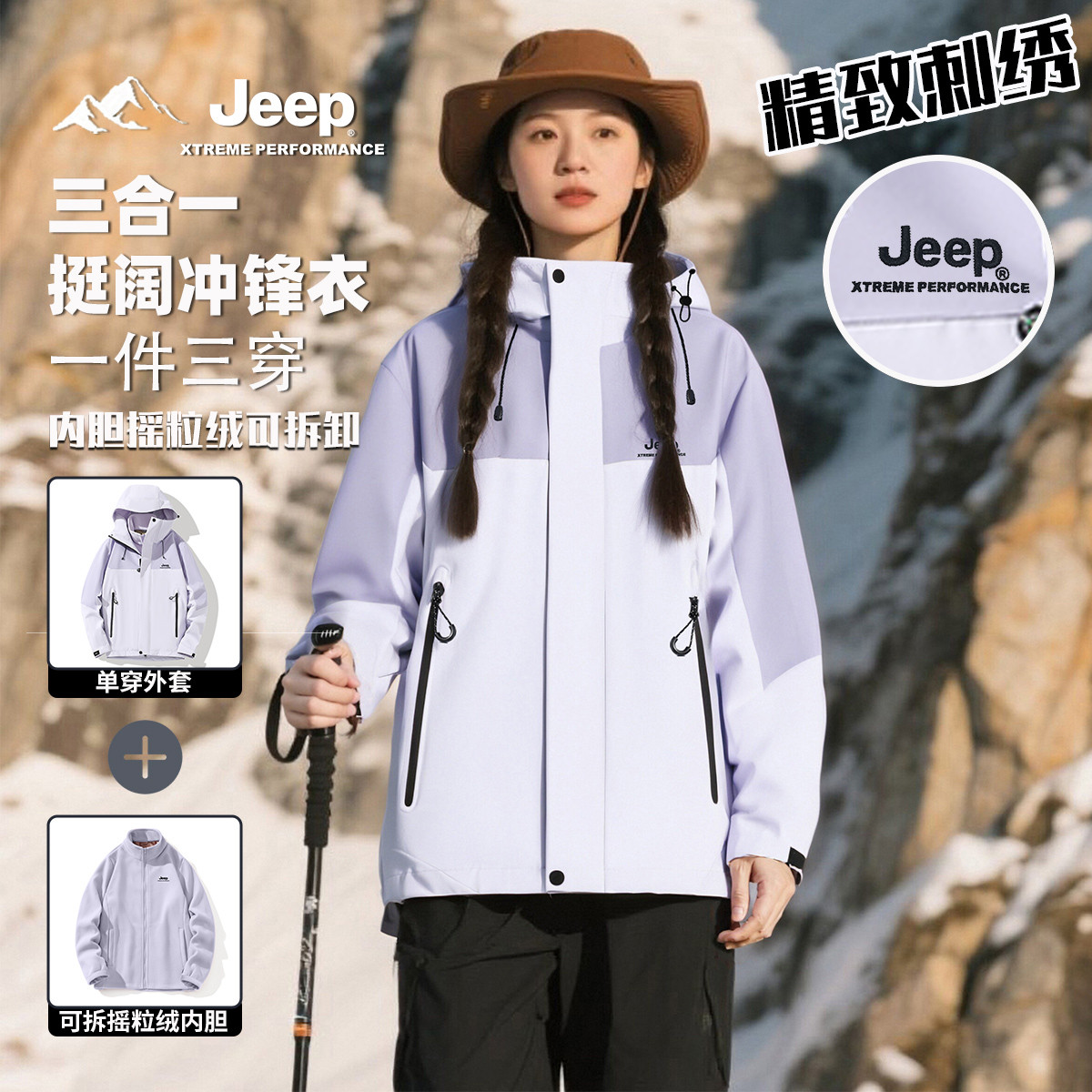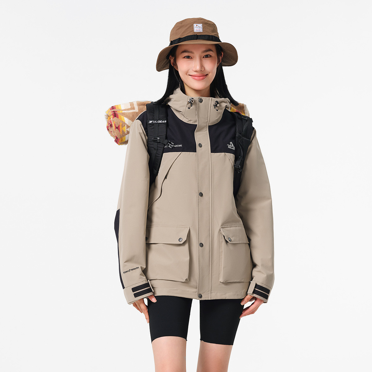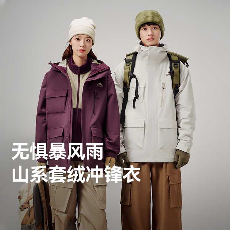 [山系露營]駱駝沖鋒衣女三合一防風(fēng)防水拼色加絨外套男戶外登山服