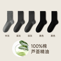 九燦休閑襪子男中筒襪秋冬季純棉底吸汗防臭加厚保暖日系刺繡短筒襪 【5雙裝】白2+奶白2+黑