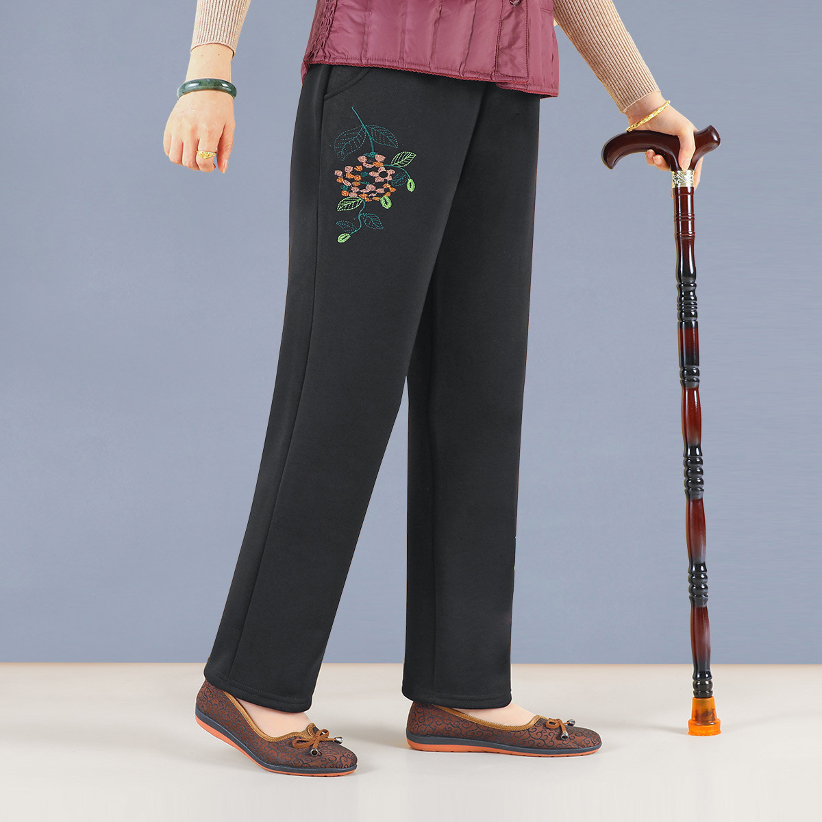 ?奉孝媽媽加絨褲子秋冬中老年棉褲女外穿奶奶褲高腰加厚保暖褲老人長(zhǎng)褲 十字紋 4XL(建議135-150斤沖沖沖