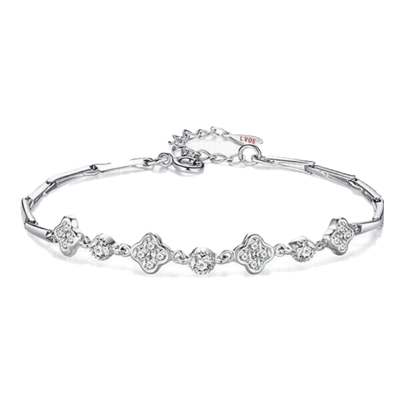 GLTEN【鑲8顆施華洛世奇鋯】999足銀四葉草手鏈女生圣誕節(jié)生日禮物送女友老婆結(jié)婚紀(jì)念日情侶首飾品 【施華洛