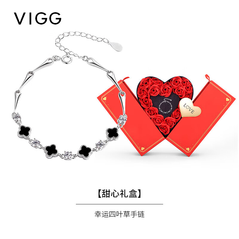 中國(guó)珠寶 四葉草銀手鐲足銀999銀鐲子銀飾送女友送老婆時(shí)尚飾品學(xué)生閨蜜手環(huán)首飾 約20g 新版玫瑰禮盒裝好