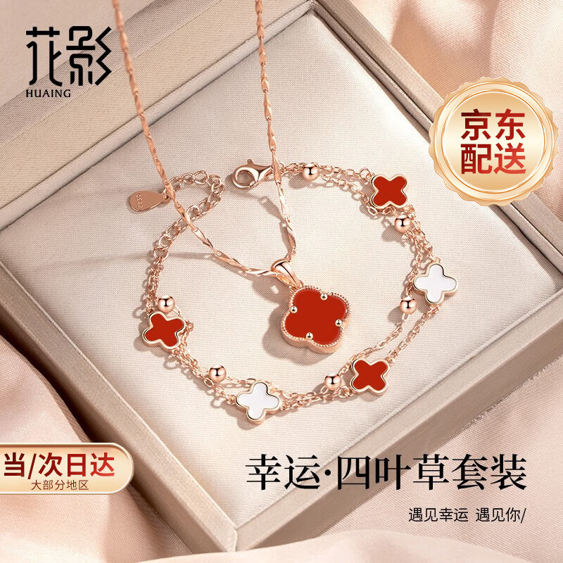 圣雅羅999足銀四葉草項(xiàng)鏈女士鎖骨鏈時(shí)尚首飾品吊墜生日圣誕節(jié)禮物送女朋友老婆 幸福四葉草吊墜+項(xiàng)鏈+玫瑰圣