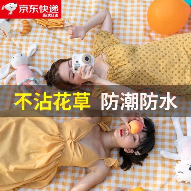 得力加厚野餐墊戶外超大可折疊地墊露營沙灘帳篷防潮墊黃白格