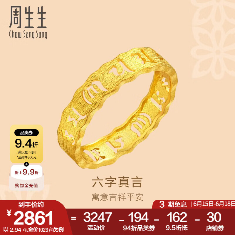 周大福 花月佳期 花朵光砂黃金戒指 + 黃金吊墜,小夫妻與寶寶的情人節(jié)