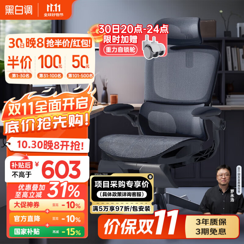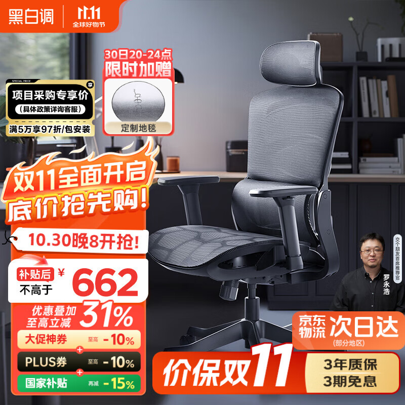 黑白調(diào)E3Pro 4代人體工學(xué)椅電腦椅子辦公電競(jìng)椅久坐