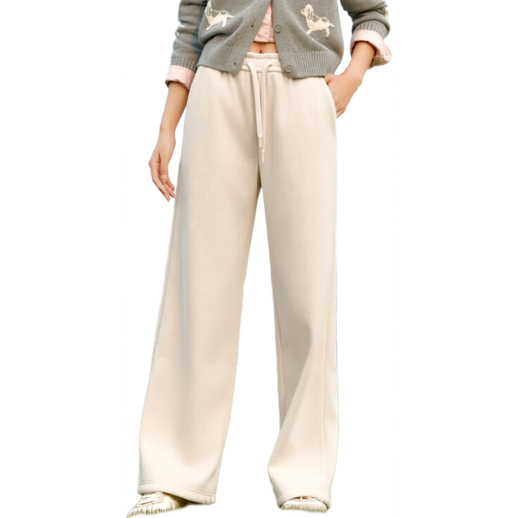 豐淞雪尼爾闊腿褲女春秋冬季加絨高腰垂感寬松直筒保暖白色燈芯絨休閑褲 米白色(加絨款)【小個子款】 S豐淞雪