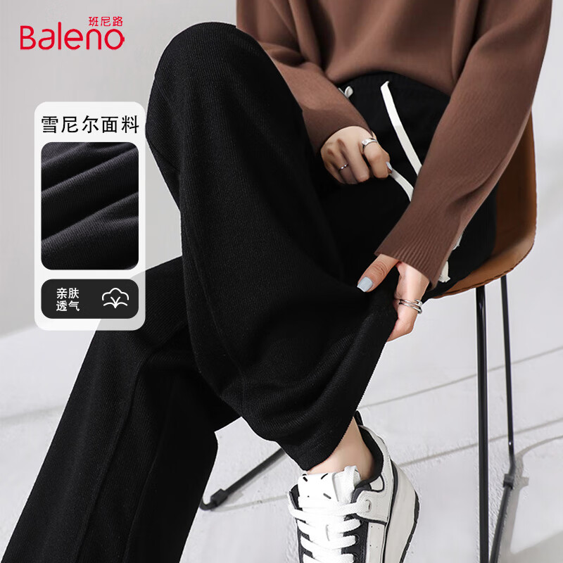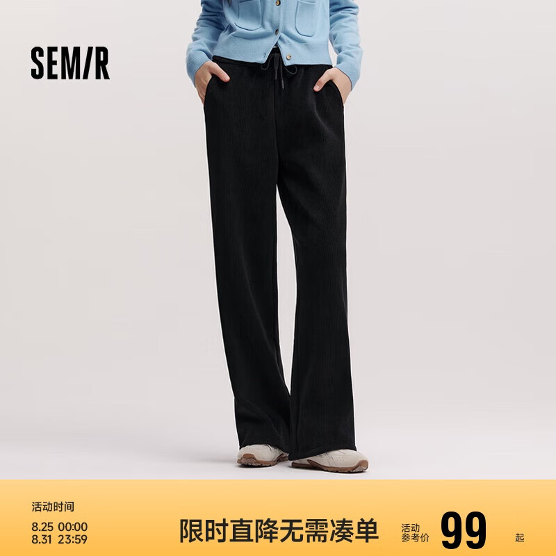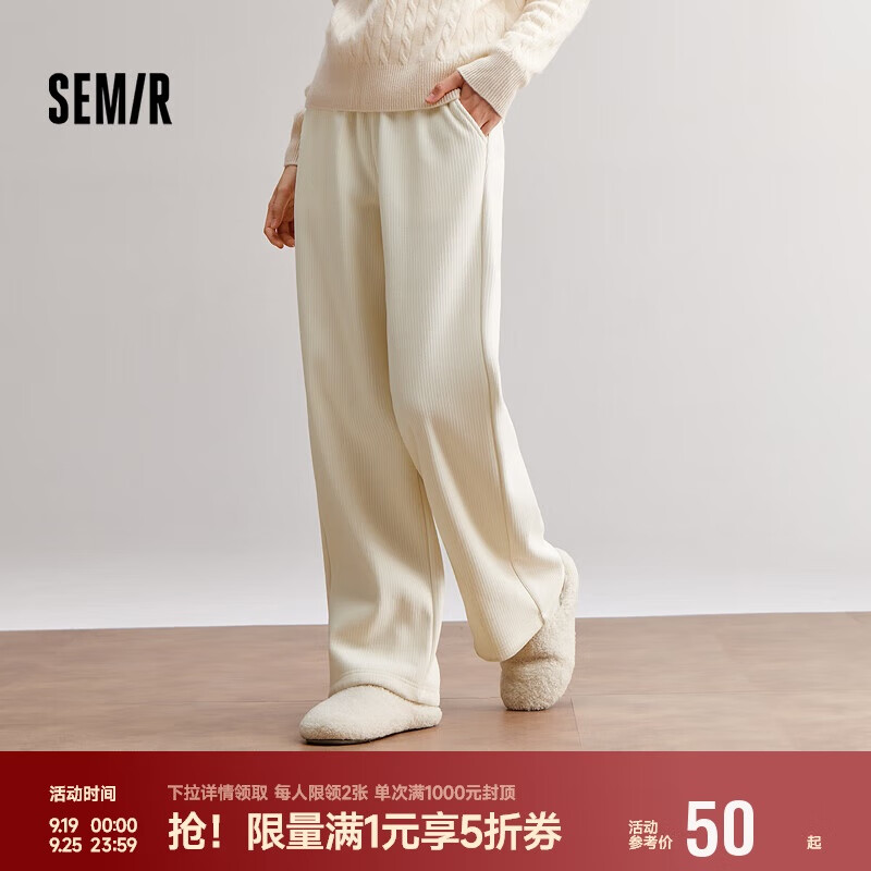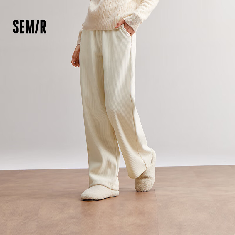 雙11曬后購之森馬(Semir)休閑褲女雪尼爾闊腿褲24冬季加絨長褲