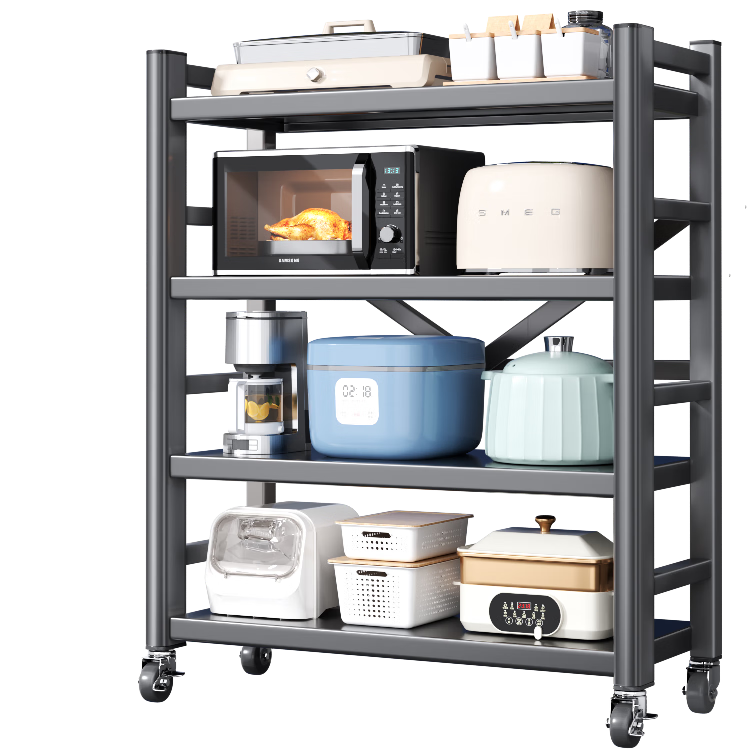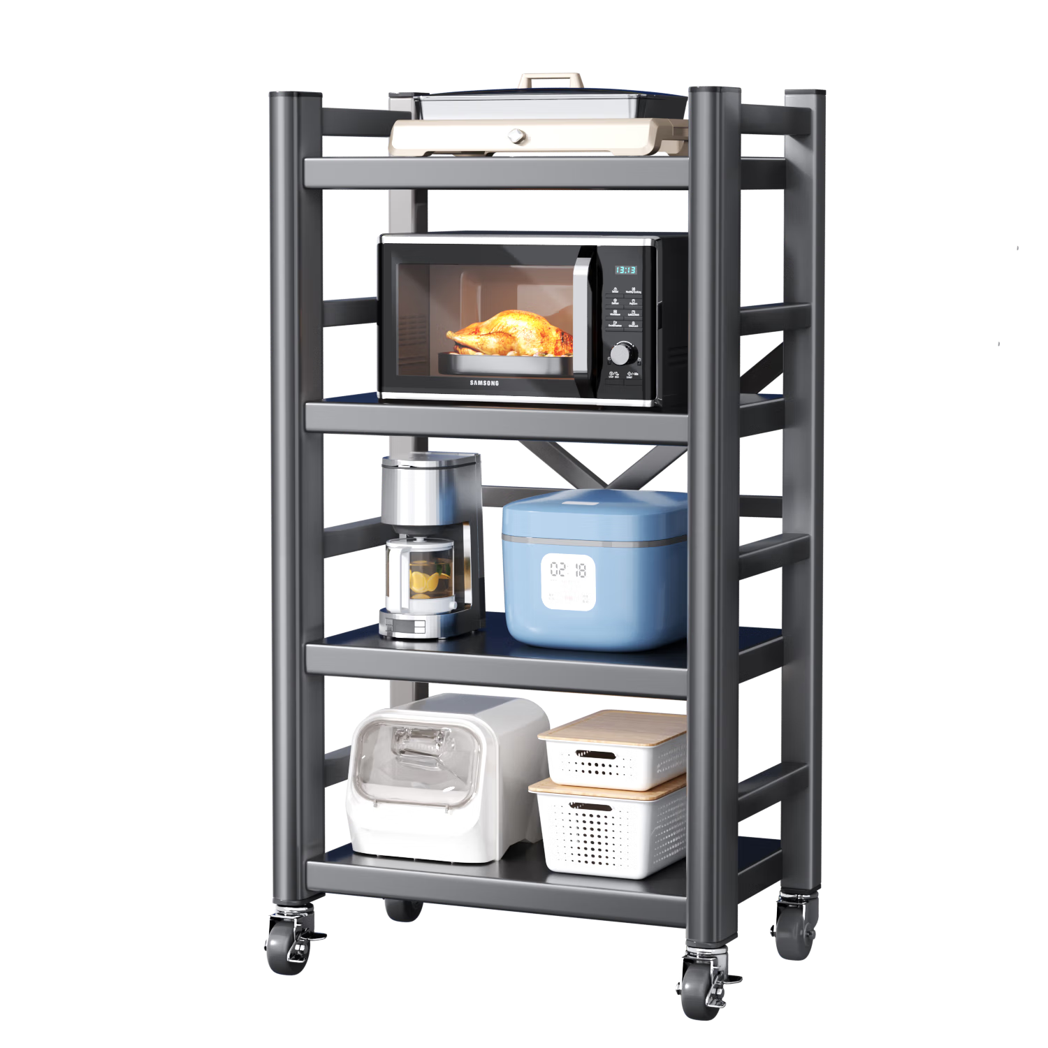 圖書館猿の美廚 maxcook 廚房置物架 黑色四層儲物架收納架 簡單曬