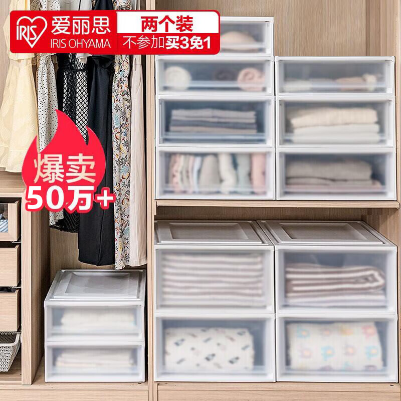 愛麗思(IRIS)【買3勉1】愛麗思收納箱可疊加塑料抽屜式收納箱儲物箱內(nèi)衣收納盒?