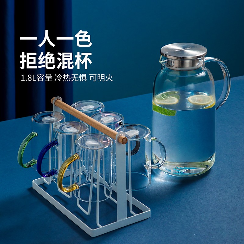 德國MOOSEN 涼水壺玻璃耐熱高溫防爆家用大容量水瓶涼白開水杯茶壺套裝冷水壺泡花茶果汁熱飲茶具 1800ml